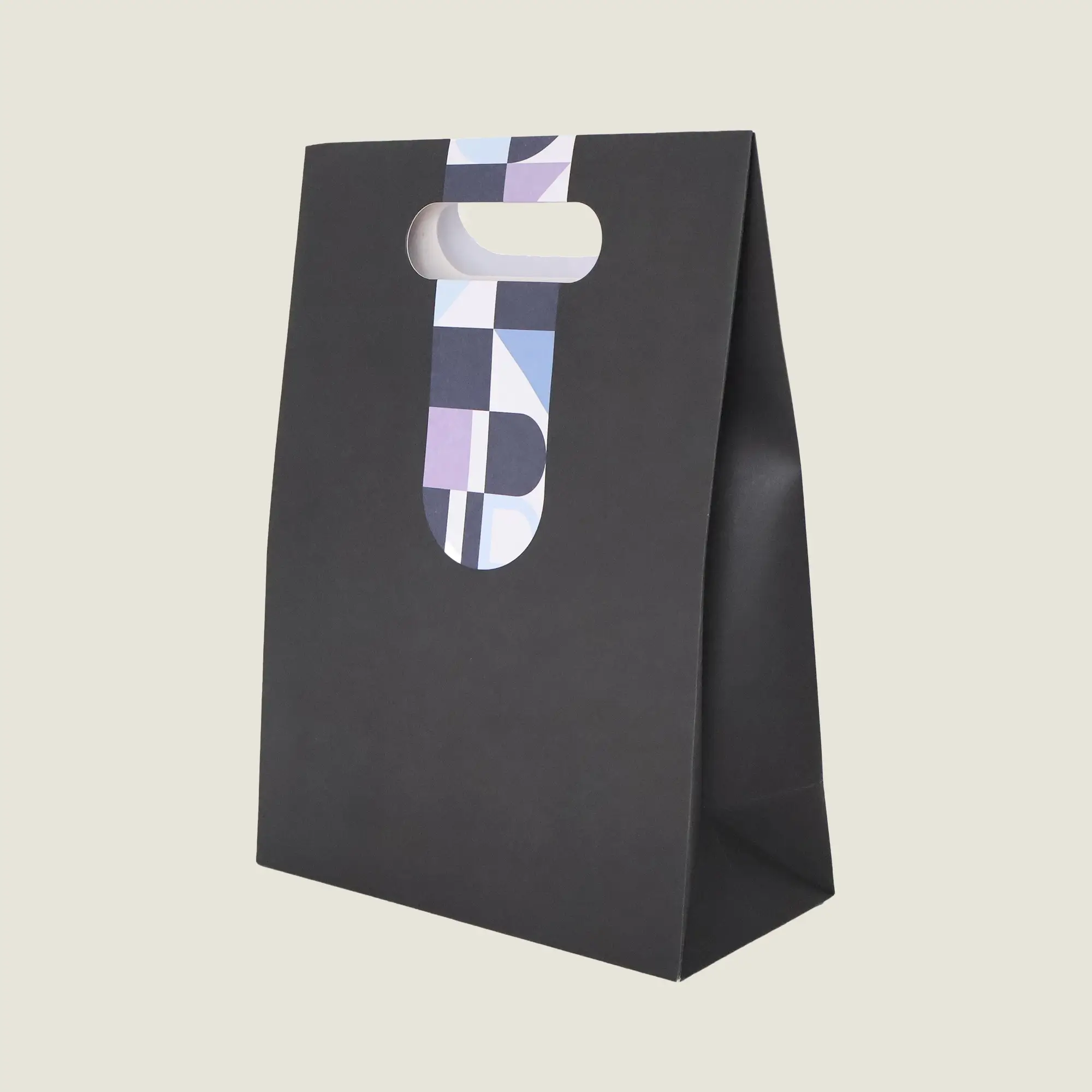 Our bespoke die-cut handle paper bags offer a sleek, modern packaging solution perfect for premium brands and high-end products. Designed with clean lines and a refined finish, this handle style delivers a contemporary, minimalist look that enhances brand presentation.